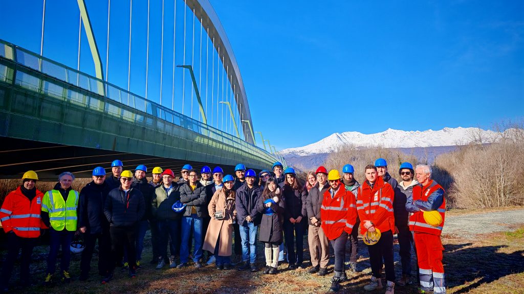 On the second day, participants visited the Marchetti Viaduct in Pavone Canavese, a remarkable single-arch, lower-track steel structure with a 250-meter span. The viaduct is embedded with real-time sensors that monitor temperature, deformation, and structural integrity, sending data to a central control unit. In winter, if temperatures drop below a critical threshold, the road surface is automatically treated with an eco-friendly antifreeze layer to ensure safety.
